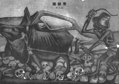 我收藏有《十日谈》和《时代漫画》,对照张光宇的漫画风格,可以看到张仃也学的是珂弗罗皮斯(墨西哥漫画家),张仃那张《春耕图》(见图3),很明显的珂氏风格。