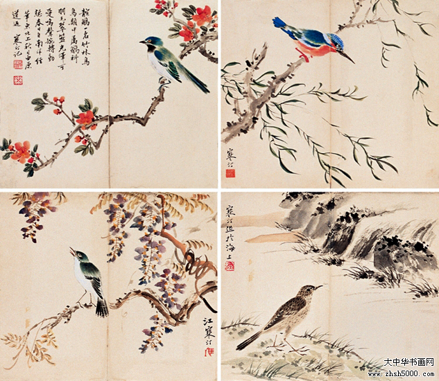 纵观宋、元名迹,悟其谨严、放纵之情,对双钩填彩,没骨写生,均所擅长,尤擅描绘各种禽鸟,家中...